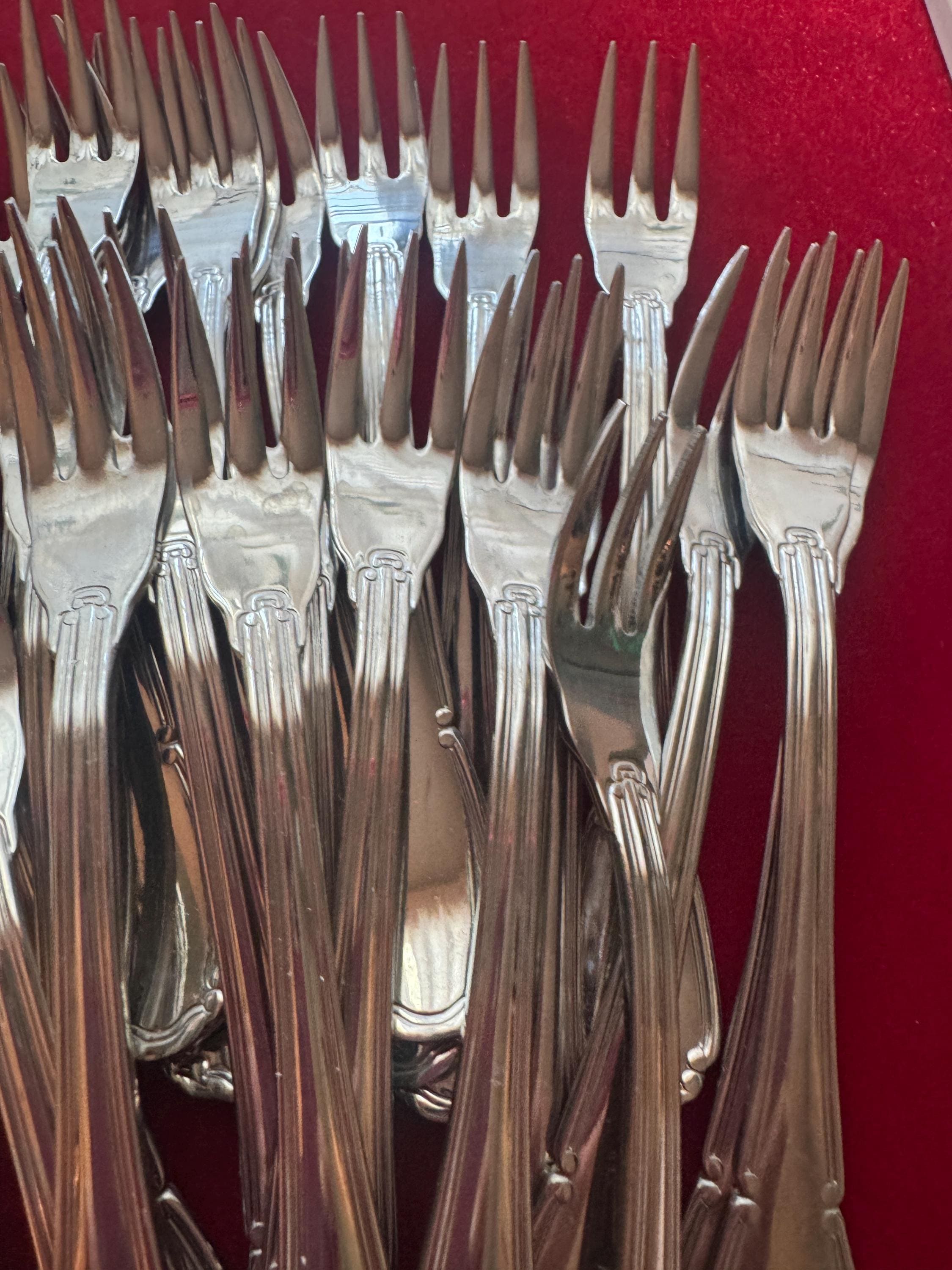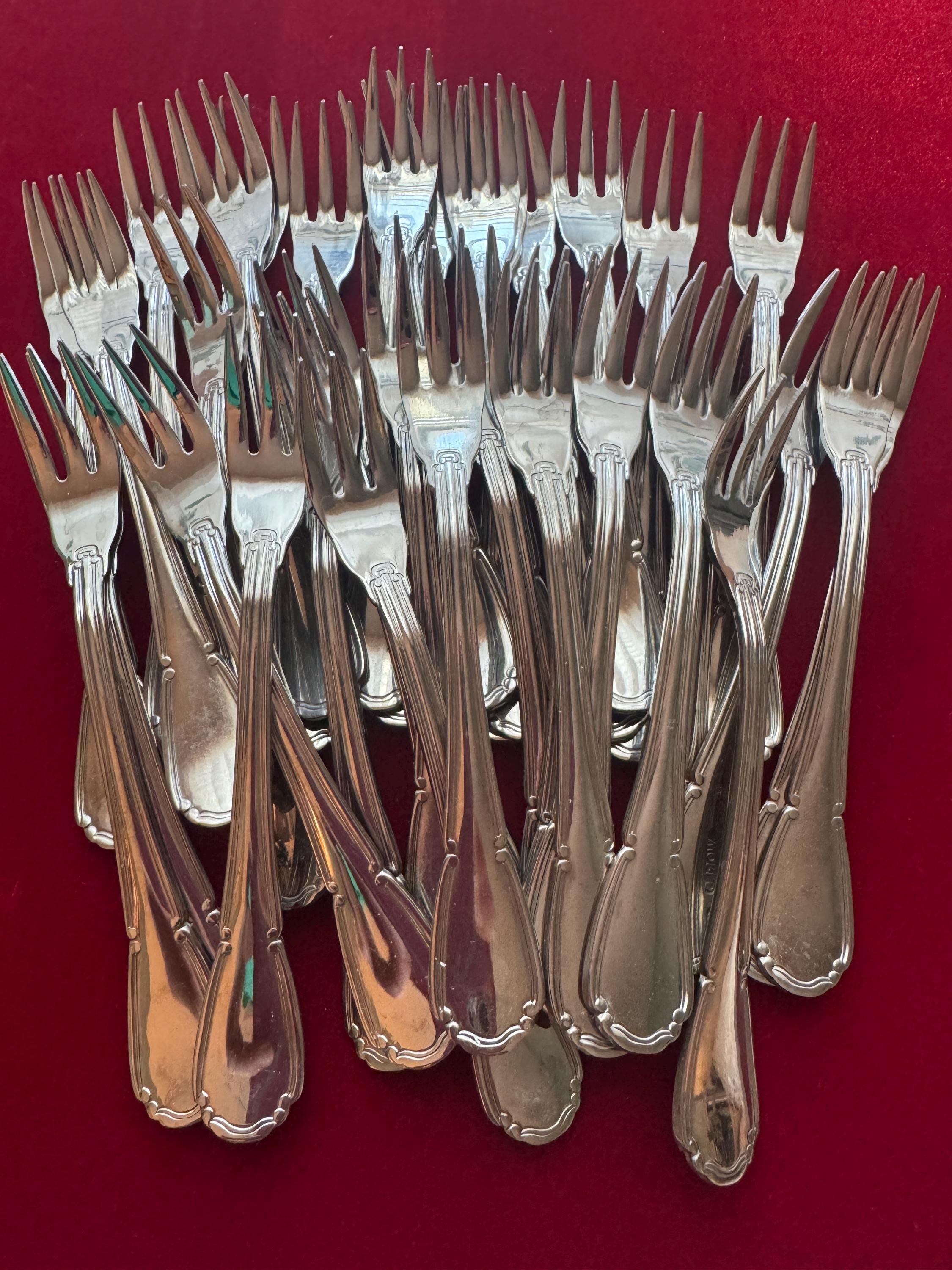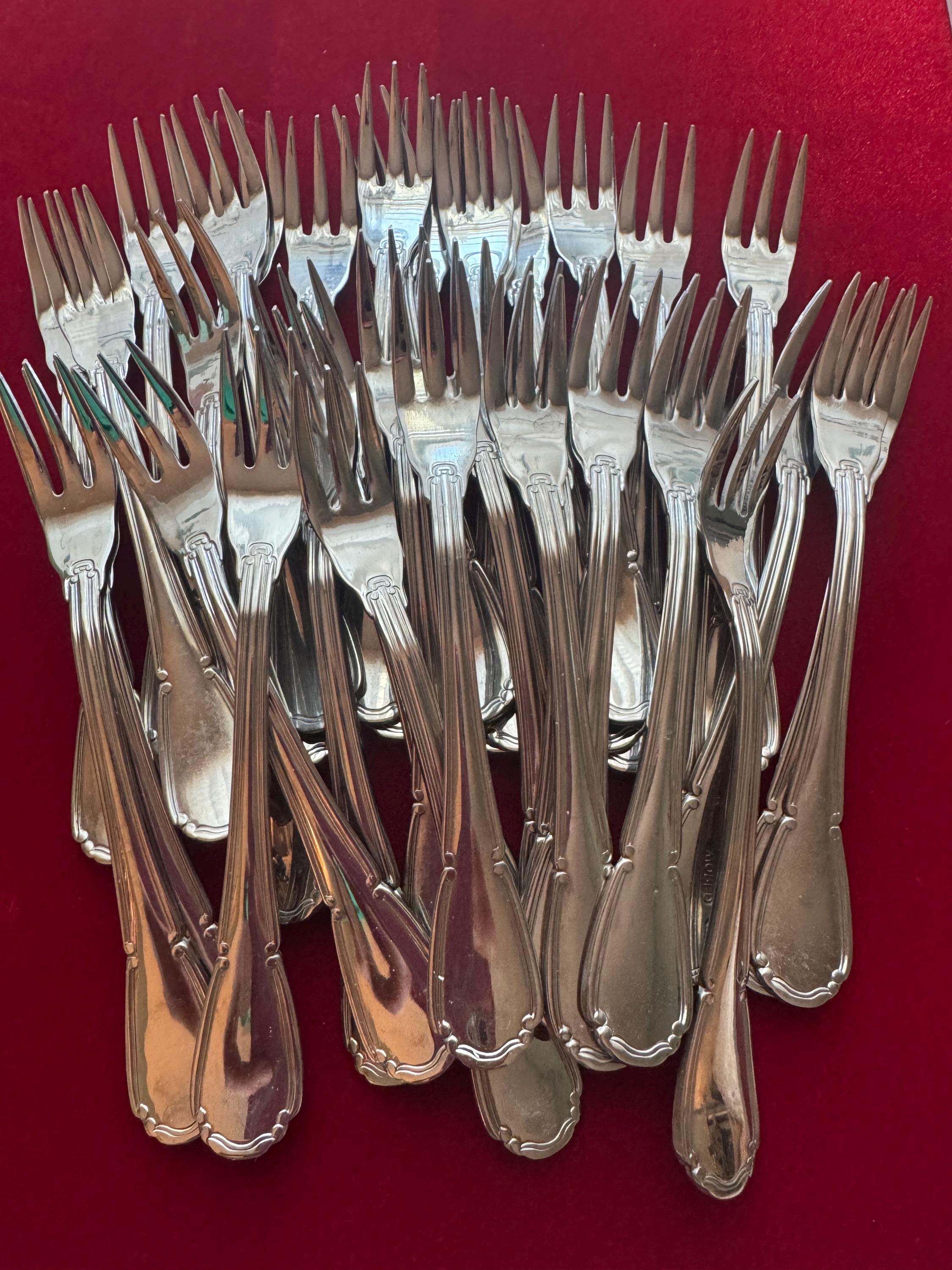 Set of 35 - International Silver Co Cocktail Fork Set, “Baroque” Boxed Like New Silver Plated
